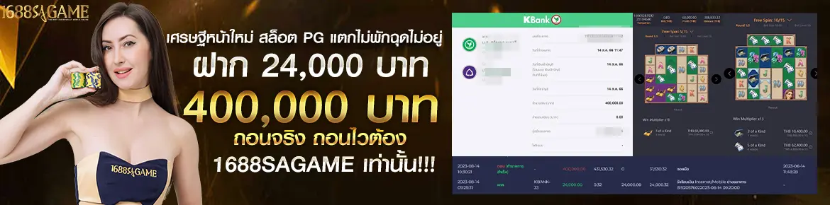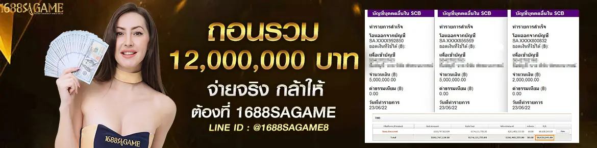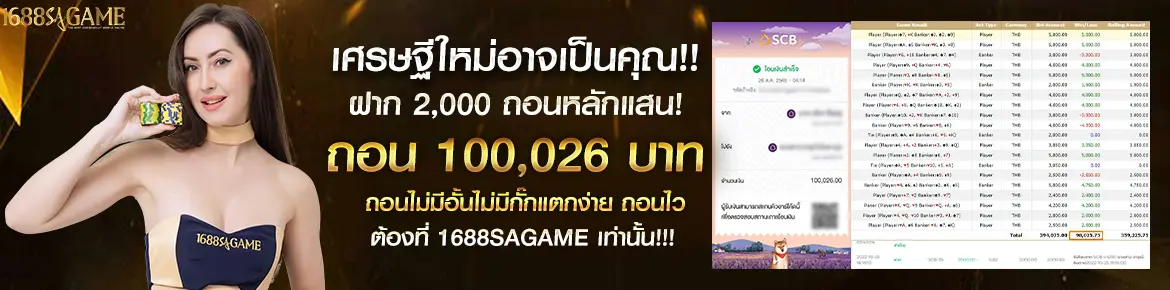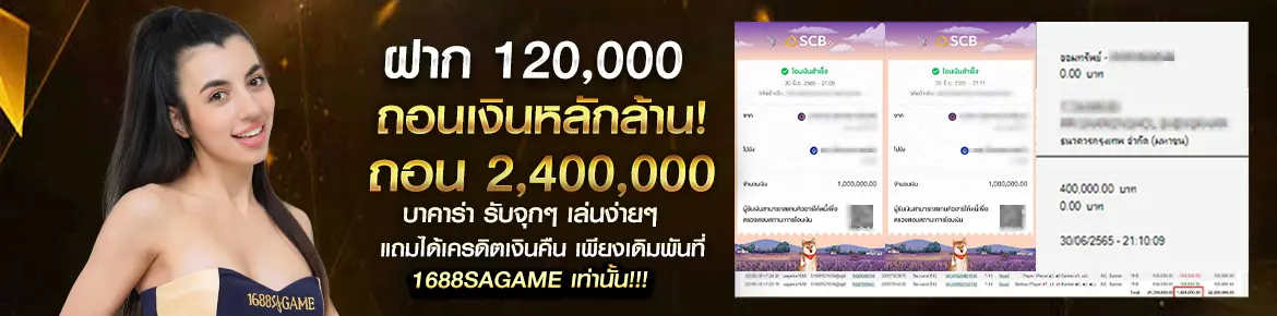 สุดยอดเว็บคาสิโนออนไลน์1688SAGAME ฝาก-ถอนอัตโนมัติ 30 วินาที รับโบนัส 100% ทันที1688SAGAME คาสิโนครบครัน บาคาร่า สล๊อต เกมยิงปลาและเกมอื่นๆ อีกมากมาย ถ่ายทอดสดแบบ Live 24 ชั่วโมง จากค่ายเกมหลากหลายค่ายเกมทั้ง SA Gaming, Sexy Game, Kingmaker, WM Casino, Jokergame, PG Slot รวมสุดยอดคาสิโนที่ดีที่สุดในเอเชียไว้ในที่เดียว พร้อมให้บริการและดูแลลูกค้าตลอด 24 ชั่วโมง ด้วยทีมงานมืออาชีพกับประสบการณ์มากกว่า 10 ปี 1688 SAGAME มีระบบการทำงานที่เสถียรมากที่สุด รองรับการเล่น ผ่านบนมือถือทั้งระบบ iOS และ Android คาสิโนออนไลน์ของ1688SAGAME เหนือกว่าที่อื่นใดด้วยระบบการเล่นแบบออนไลน์ โดยไม่ต้องดาวน์โหลดติดตั้ง ด้วยเทคโนโลยี HTML5 ที่ช่วยให้การเล่นเกมส์คาสิโนผ่านเว็บ เป็นเรื่องที่ง่ายมากยิ่งขึ้น และเป็นหนึ่งในคาสิโนออนไลน์ได้เงินจริงเพียงไม่กี่แห่งในเอเชีย ที่สามารถฝากถอนได้ด้วยตัวเอง โดยไม่ต้องผ่านซัพพอร์ต ฝากเงินแล้วเล่นได้ภายในเวลาไม่ถึง 30 วินาที ถ้านึกถึงคาสิโนออนไลน์ ต้องนึกถึงที่1688SAGAME เท่านั้น